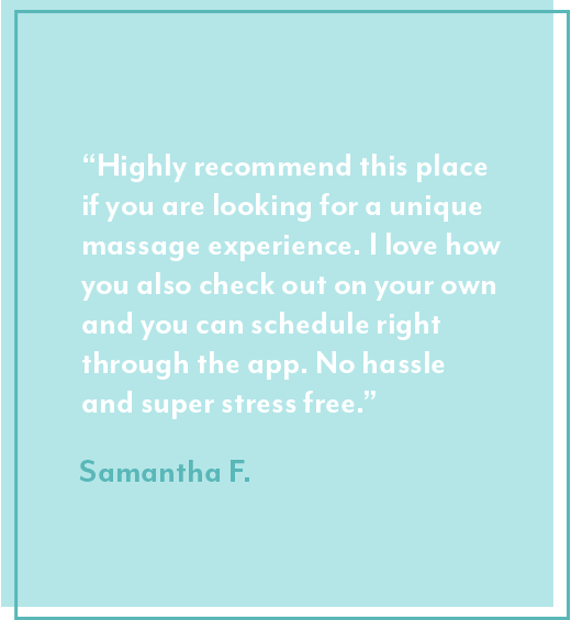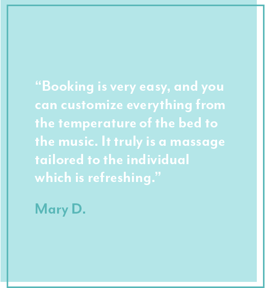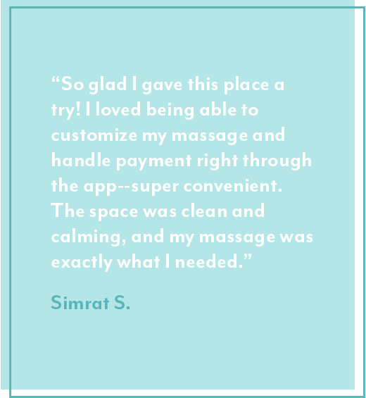 Our app-booking massage experience makes it quick and easy for you to squeeze some time in for personalized self-care. Just book a location and your favorite therapist on the app, and let us know of your massage preferences. That way we’ll know exactly what you want, each and every time.
